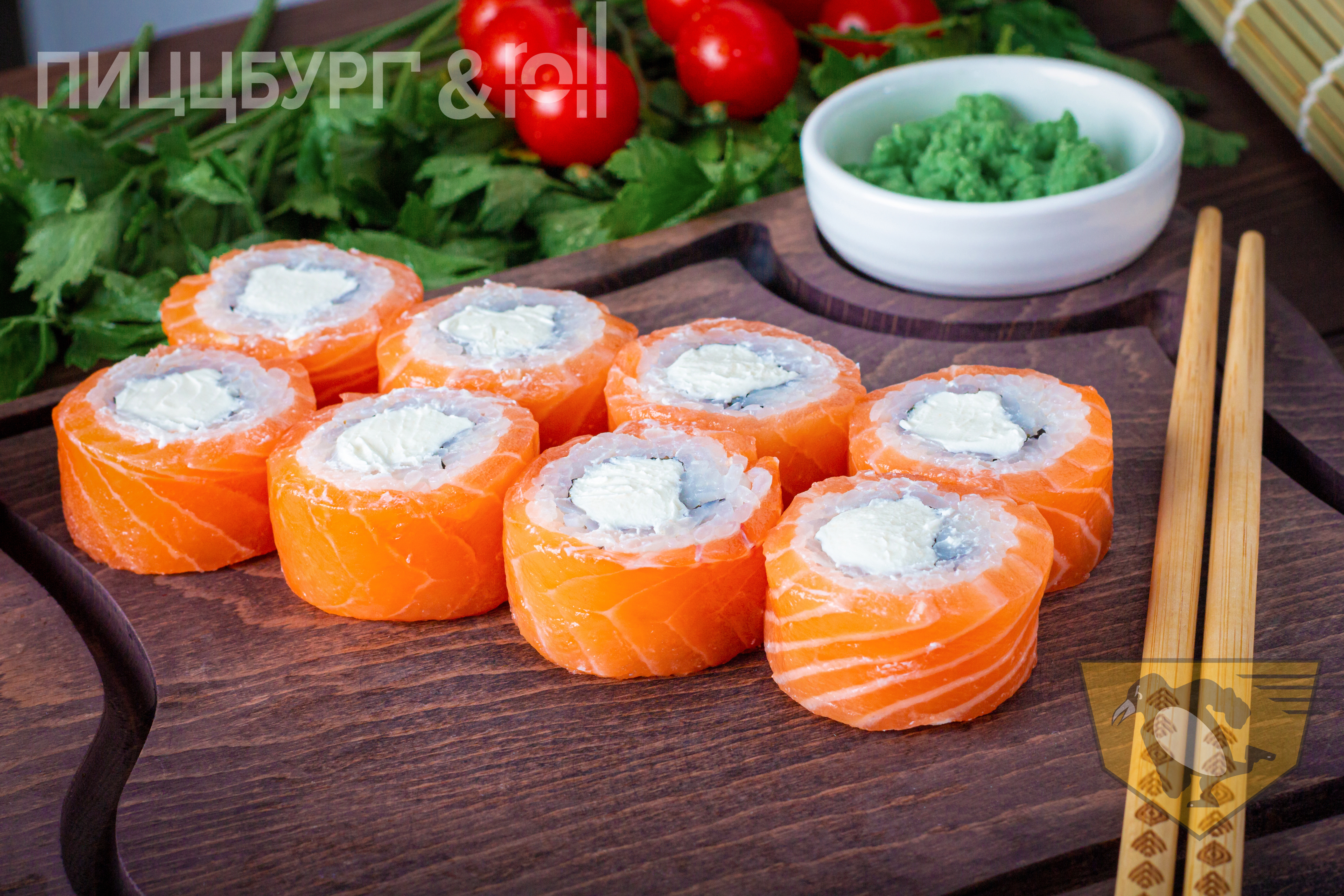 рис, нори, огурец, сливочный сыр, лосось.