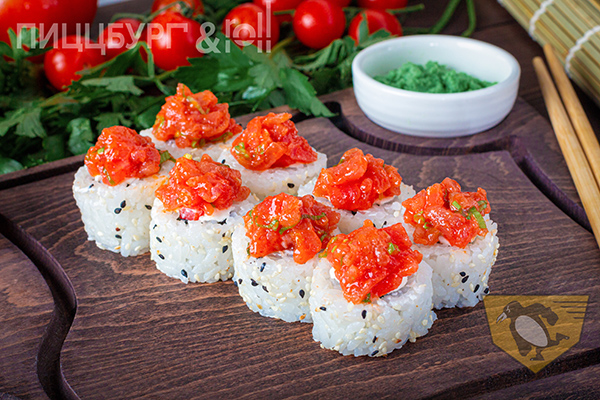 рис, нори, нежный творожный сыр, черри, кунжут, тунец, лук зеленый, соус шрирача (Острый)